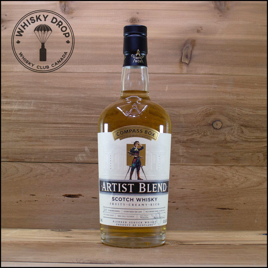 Artist's Blend est un hommage aux mélangeurs de la fin du 19e siècle, des individus qui ont utilisé l'art, la créativité et l'artisanat pour créer un esprit qui est devenu l'une des boissons les plus célèbres et les plus recherchées au monde. La combinaison de whiskies single malt savoureux et de whiskies single grain délicats produit l'un des styles de whisky écossais les plus revigorants et les plus agréables. Compass Box s'est inspiré de recettes d'archives de l'âge d'or de la fabrication du whisky et a appliqué ses propres techniques de maturation en fût du 21e siècle pour créer des whiskies à haute teneur en single malt, offrant une saveur et une complexité convaincantes tout en conservant la polyvalence d'un Blended Scotch.