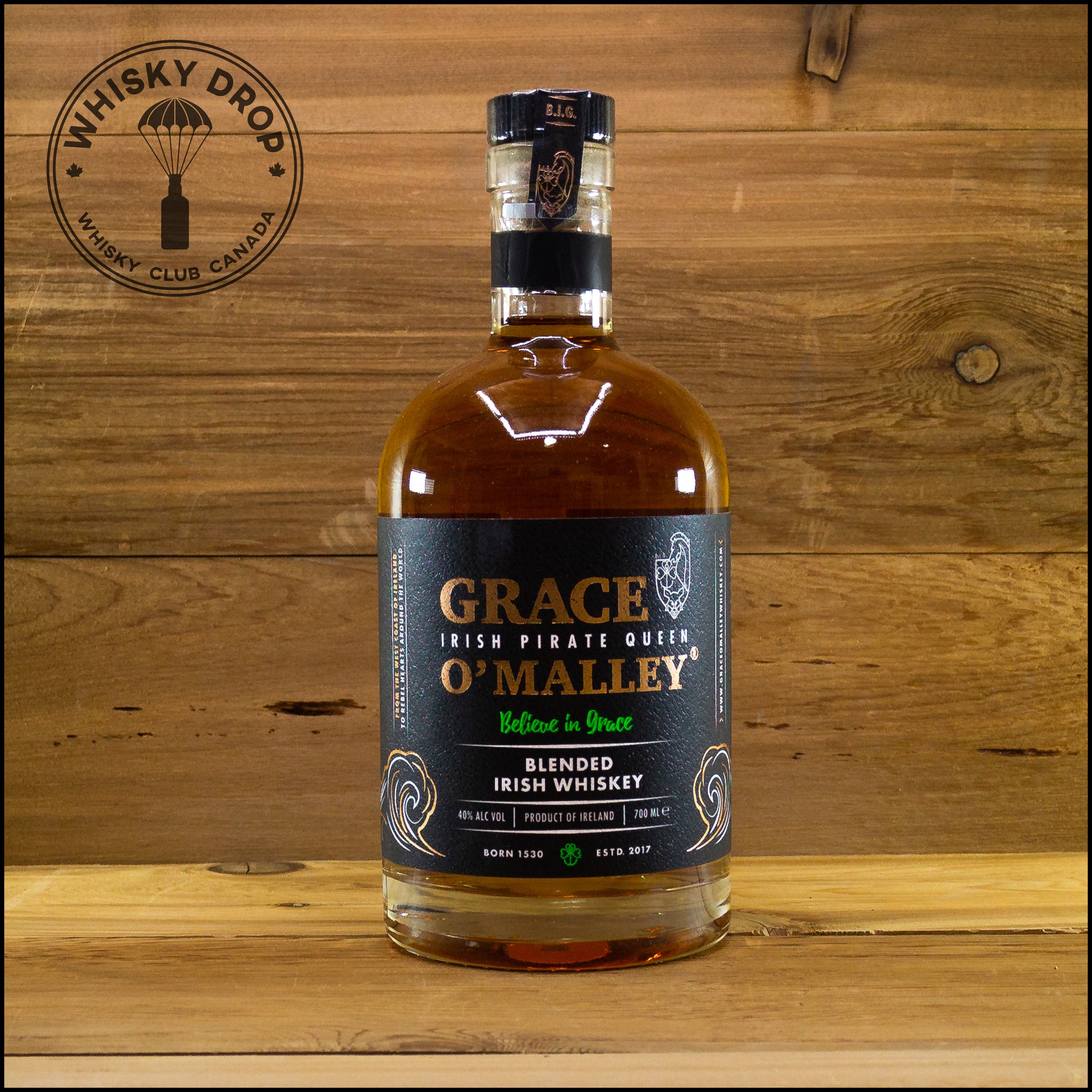 Grace O'Malley Spirits est dédiée à la reine pirate irlandaise du XVIe siècle, également connue sous le nom de Granuaile, née dans la noblesse irlandaise du comté de Mayo en 1530. Marque internationale avec un héritage local, Grace O'Malley Spirits collabore avec une équipe de tonneliers locaux. , des distillateurs irlandais renommés de The Great Northern Distillery et des conseillers techniques, dont l'expert en spiritueux mondialement reconnu, le Master Blender Paul Caris, pour apporter au monde un whisky irlandais haut de gamme distinctif. Grace O'Malley Irish Whiskey est un mélange spécial, combinant plusieurs lots de whisky de différentes déclarations d'âge de trois à 10 ans. Chaque lot de whisky est élevé dans une gamme de types de fûts, dont du chêne français. Les fûts sont sélectionnés à la main en fonction des caractéristiques de chaque whisky, y compris le whisky de grain vieilli dans d'anciens fûts de bourbon et le whisky de malt vieilli dans d'anciens fûts de rhum. L'assemblage résultant offre un whisky parfaitement équilibré entre saveur, caractère d'âge, complexité et douceur.