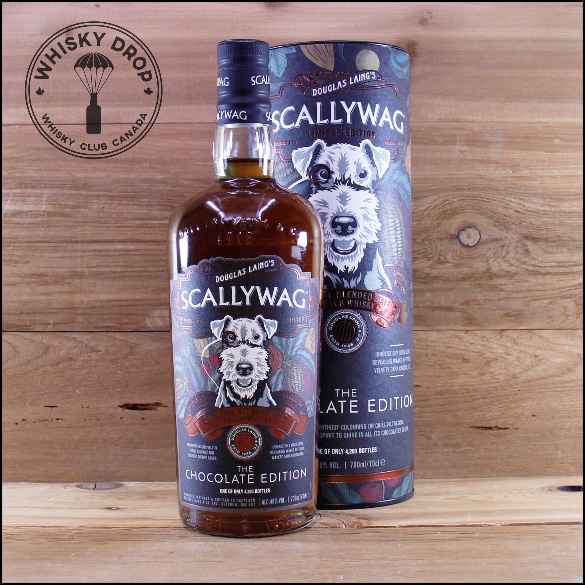 La quatrième version de la Scallywag Chocolate Edition est un mariage de Single Malts Single Cask 100% Sherry mûris uniquement du Speyside. Chaque fût aurait été sélectionné à la main pour ses "notes de dégustation riches en cacao". Le spiritueux qui en résulte dévoile une "couleur terre de sienne brûlée naturelle" avec des notes délicieuses de "glaçage au chocolat crémeux, de dattes juteuses et de riches fruits rouges". Ce dram corsé a été mis en bouteille sans coloration ni filtration à froid. L'édition chocolat a gagné en popularité depuis la mise en bouteille inaugurale en 2018. Rendement total : 3 000 bouteilles dans le monde.